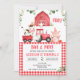 Red Plaid Barn Tractor Farm Birthday Invitation
