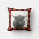 Red Plaid Highland Cow Cabin Mountain Lodge Throw Pillow