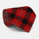 Neck tie featuring a classic red and black plaid pattern.