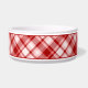Lovely plaid pattern in red color scheme. There is also an oval shape banner that has a personalizable text area for the name of the pet. The font is a nice script font in red color.