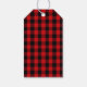 These fun holiday gift tags feature a square photo template, red and black buffalo check plaid, and stylish typography.