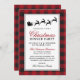 Red Plaid Reindeer Christmas Dinner Party Invitation