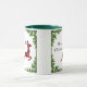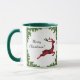 This festive and colorful Christmas holiday coffee mug features a festive red plaid flying reindeer framed in sprigs of bright evergreen branches. Perfect for your Christmas holiday celebration! Personalize it with your own Holiday greeting!