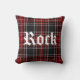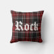 Red Plaid "Rock" Tartan Pillow ("rock" text is customizable)