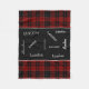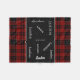 A bold red & black plaid print with fun fonts and name personalization in the center. Would make a great gift!