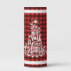 A dark and light red buffalo plaid tartan pattern has white typography lettering on it in the shape of a Christmas tree that reads "we wish you a Merry Christmas". This table top decoration is ideal as a gift to friends and family and is ideal as a stocking stuffer too.