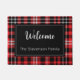 Red Plaid Welcome Monogrammed Family Name Doormat