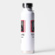 Red Player Name Number Team Photo Water Bottle. Personalize it with player photo, name, team name, player number and year. The text is trendy bold grey with red stripes. A perfect gift for a sports player, teammate or coach.