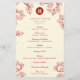 Oriental peach / plum blossoms, spring flowers in deep red, ivory and white with a simple round double happiness symbol. An elegant and romantic floral chinese themed wedding program design which is whimsical, modern and classy.