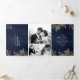 Red Poinsettia Fireplace Christmas Navy Wedding Tri-Fold Invitation