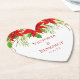 Red Poinsettia Holiday Wedding Custom Heart Paper Coaster