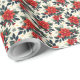 Cute red poinsettia flower Christmas holiday gift wrapping paper.