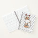 Destei's original cartoon illustration of a cute red point coat color Birman / Ragdoll breed cat. The background has a pattern of gray cat paw prints. Under the cat there is a personalizable text area for the title of the notebook.