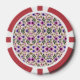 Red poker chip with floral pattern featuring purple and pink flowers, green leaves on cream background; front and back views with symmetry.