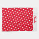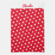 A stylish red and white tea towel, with a fun polka dot pattern. Personalize with the recipient's name, which will appear in red script typography on a white panel at one end of the towel.