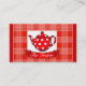 Illustrated red polka dot teapot framed in plaid with red banner label underneath to display your business name. These double-sided business cards are perfect for cute and homely cafes, country kitchens, retailers or hospitality. Image and business name on front and business details on reverse. Customise to suit your needs.