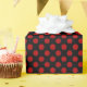 red polka dots on black wrapping paper
