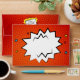 Pun pop art envelope in bright red with a white burst for the address. Speech bubble on the back flap for the return address.