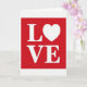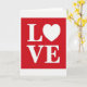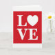 This greeting card shows the word “LOVE” centered on a deep red background. The letters are white and easy to read, and the “O” is replaced with a white heart shape that stands out right away. The red area is a neat square with a thin white border around it, giving the design a finished look. The message is simple and direct, making it feel romantic and sincere ❤️. The strong red color brings to mind warmth and closeness, while the white letters and heart add a calm, honest touch. The lettering has small finishing strokes at the ends, which gives it a classic feel without being fussy. Overall, it’s a straightforward way to say “I love you” and it works for a partner or someone you care about 💕.
