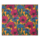Hand drawn vector pattern with red poppy flowers and blue cornflowers