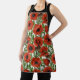 Great color and even though I ordered the kid size, it covers well enough to use during the holidays. I am not a big woman and prefer a shorter apron. I stand 5"6" and the length of the garment goes to mid-thigh. The tie straps fit well at my waist and even though there is no neck strap adjustment, the opening is plenty big enough. I am happy with the size and fit. I am sharing my apron with my 10 year old grandson, too! The color is vibrant and looks good, as shown on the website. The stitching looks strong and reinforced. Photographed is front side and back side of the apron, reinforced straps and coloring. My phone camera may not be the best at showing the details.
