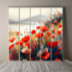 - Rich, vibrant red poppies stand out against the dark backdrop of the lake, creating a striking contrast that draws the eye.