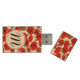 Red Poppies Floral Pattern & Monogram Wood Flash Drive