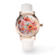 A watch with a beautiful watercolor image. A field of red flowers with lovely watercolor drips and splotches.