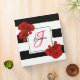 Beautiful elegant floral design featuring frame of red poppies on a black and white striped background. You can personalize the design of the product by changing the text in the field provided. You can change font style, size and color by using the Customize button.