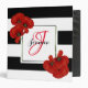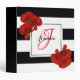 Red Poppies on Black & White Striped Background 3 Ring Binder