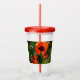Red colored tumbler featuring red poppies. Poppy flowers are pretty early summer wildflowers.