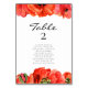 Red poppies watercolor wedding seating chart cards