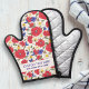 Red Poppy Daisy Floral Pattern Add Custom Text Oven Mitt