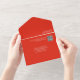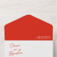 Red poppy floral wedding invitation all in one template with a digital QR code to scan and RSVP online via your website. Design with bright shades of red and watercolor flowers on an off-white background. The back of the tearable card can be edited with your return address so you can add a postal stamp and mail it without an envelope. Personalize it with up to 3 menu options and dietary restrictions. The foldable top has your address and the center is editable with your guest's address (add it online, add a pre-made label, or handwrite it).