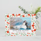 Wedding thank you card with your wedding photo inside a floral frame of red poppies with green leaves.