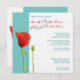 Red Poppy teal Wedding Invitation