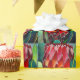 with original art design from watercolour painting by Sacha Grossel of large, red Protea flower, naïve to South Africa and Australia. Bright and colorful design with red, orange and green.