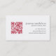 Simple and chic, this red elegant modern colored qr code business card will let your clients know you are serious. Replace the sample qr code with your own, you can create yours for free at http://www.unitaglive.com/qrcode using the color hex code #bb1e38