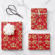 Red Queen of Hearts Gold Crown Repeat Design Wrapping Paper Sheets