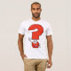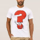 Make a real statement with the humble question mark by choosing this awesome red question mark design. This question mark is a lot of fun with a happy smiling face as the dot. This red question mark design looks great on this mens t-shirt. Perfect for yourself or as a gift
