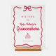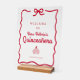Clean, modern, and effortlessly stylish, these Quinceañera Table Signs feature bold red typography, a translucent background and a hand-drawn bow and border for a trendy coquette look. It’s perfect for a fashion-forward guest of honor who values simplicity.