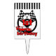 Red Racing Car 1st Birthday cake topper with a red race car, finish flags, and red text that reads "1st birthday"!