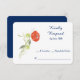 A single red watercolor ranuculus image decorates the left side of this wedding response card. Your custom text is at the right in navy blue. The image and text are placed on a white background to make it easy for your respondent to mark their choice. The back of the card is navy blue. Simple and elegant! This card matches Floral Mason Jar on Navy Blue wedding invitations and other wedding products in our store.