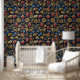 Red Raspberry & Blue Blueberry Golden Leaves Dark Wallpaper
