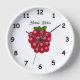 Red raspberry fruit custom kitchen wall clock. Cute summer food design. Personalize with custom name or funny quote. Cool Birthday gift for friends, family etc.
