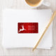 This red reindeer label is fantastic for Christmas! It features a red background with a snowflake pattern on it. In front of the background is a reindeer. These labels are fully customizable and can be edited to include your address.