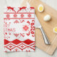 Red Reindeer Knitted Pattern White Background Towel