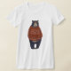 I love wearing a reprint of my colored pencil drawing of Annie the cat looking over the hillside. My illustration is based on a picture I took of Annie the manx cat. The printing turned out lovely, and the shirt is soft and thick. The American Apparel shirt run on the smaller size, so I always order a large or extra large.