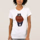 My overall review is that the T-shirt is nice, it fits true to size however the font is significantly smaller than advertised and you can't read it. The printing is unreadable and there is a strain to read it. It does not look like the advertised product. Maybe the shirt color is darker or a larger more visible font should have been used. Photos with and without flash and font is barely legible.