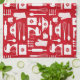Red Retro Baking kitchen towel with a cute retro style pattern with baking implements and simple retro flowers all in red and white. You can make the pattern larger or smaller on the kitchen towel.